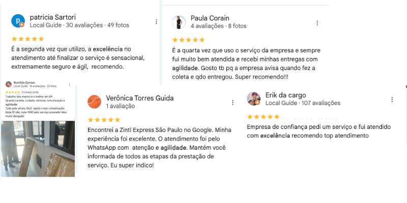 Zintl Express – Mais de 1.000 avaliações 5 estrelas no Google. A entrega mais bem avaliada de SP.